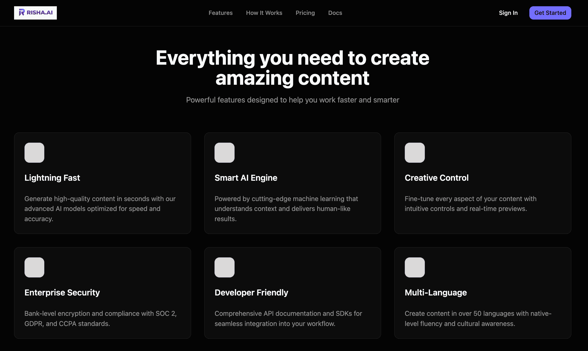 A hero section with clear CTA (Get Started, Sign In).