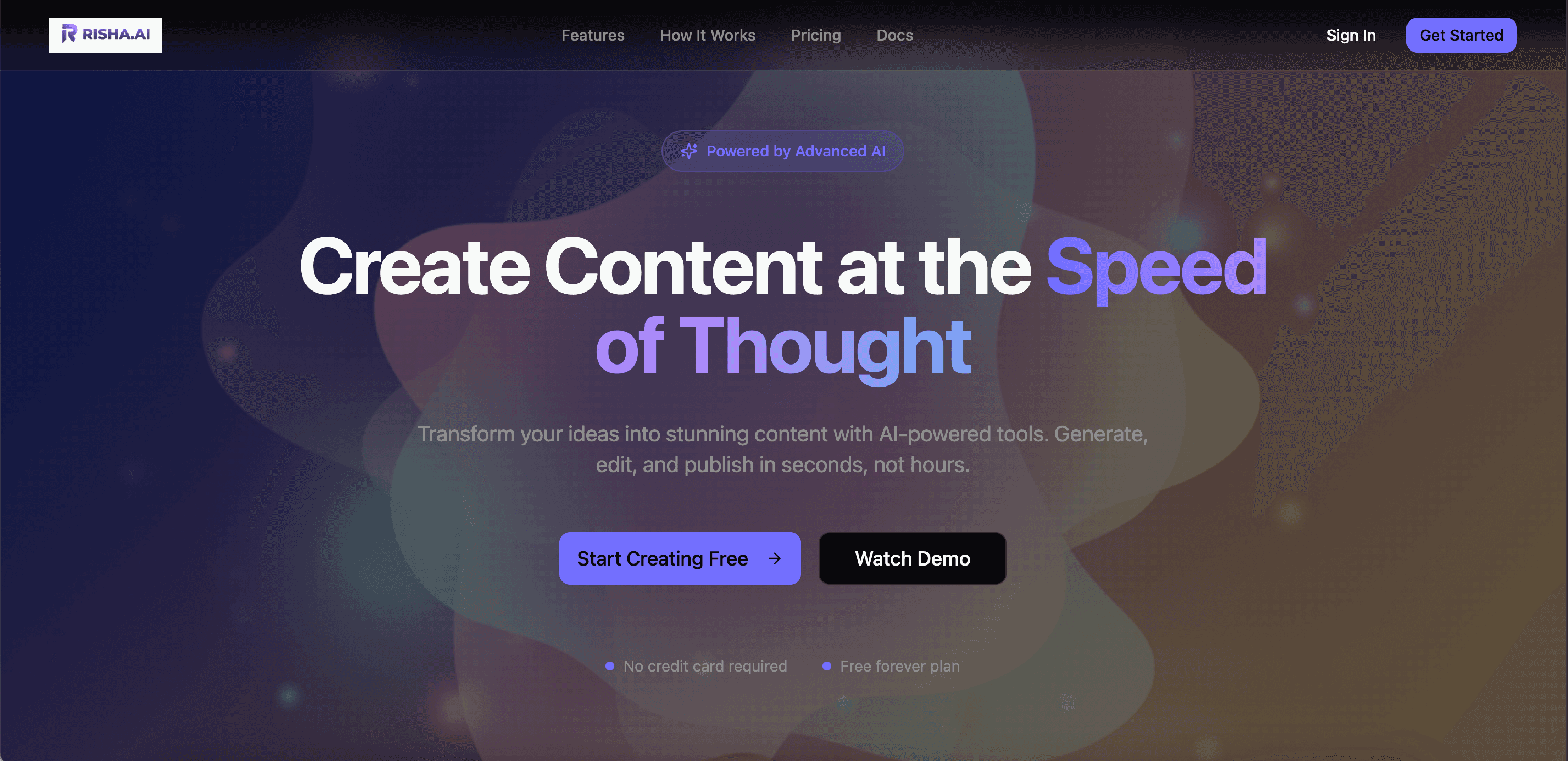 Hero Section: A bold headline with gradient background, strong CTA, and Sign In button.